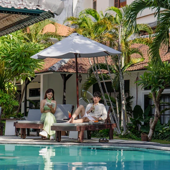 More than a place to stay, Casa Wina is a tropical hideaway built around its sunlit pool, signature sunken bar, and the easy comfort of slowing down in the heart of Kuta.